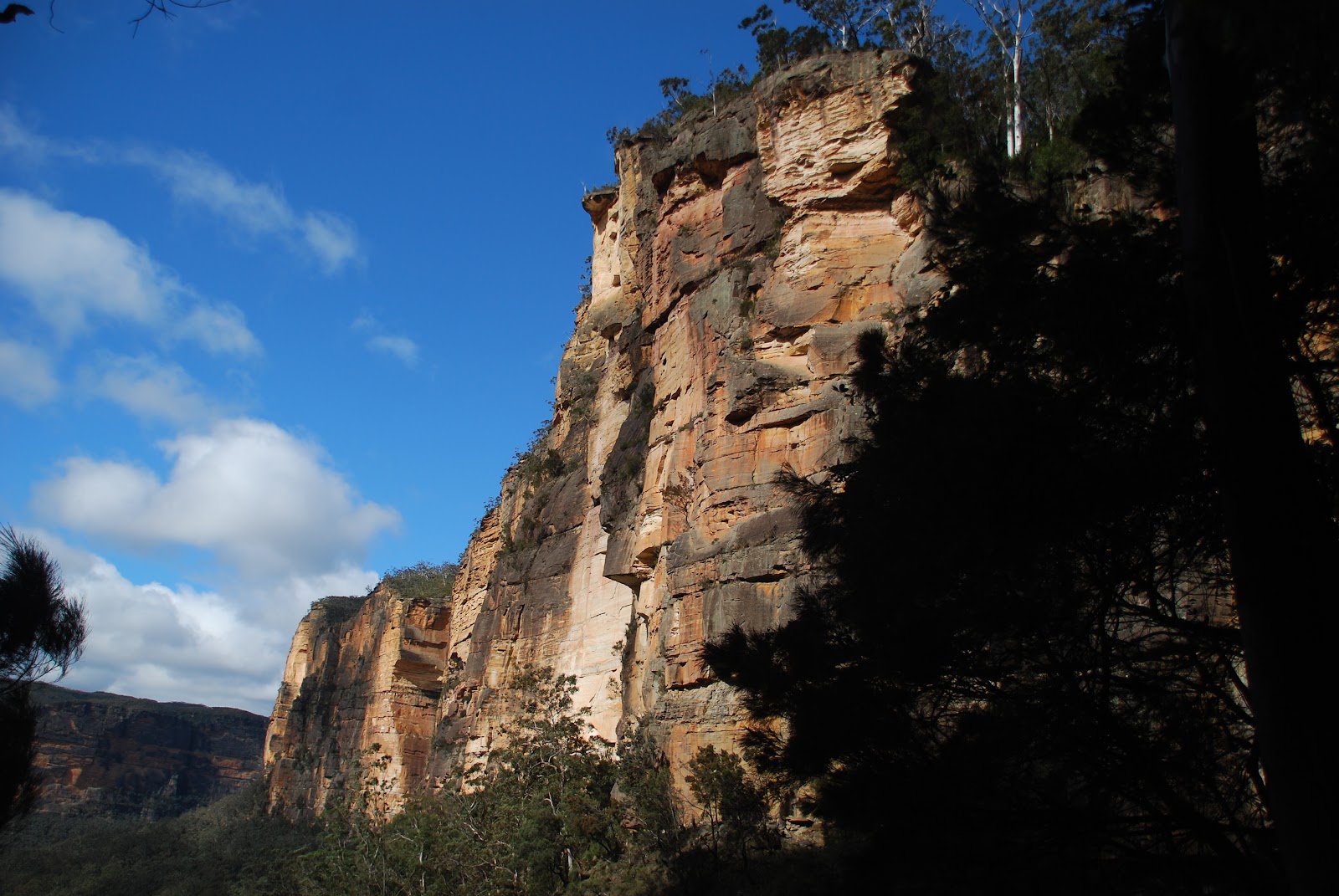 By Sunday morning the winds had eased, and with the sun out in full force it was time for some climbing! We drove out to Bells Line of Road and threaded our way between some rural houses until we reached a clearing we began our trek to the cliffs. We followed the track through scrub and along an old fire trail until we reach our objective. At some stage we passed over a train tunnel and could hear trains go by now and then.